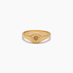 The Polaris Signet Ring features a delicate starburst engraving centered with a single crystal—subtle, symbolic, and endlessly wearable. Inspired by the Northern Star, it’s a piece that grounds you in your path. Minimal in form, with meaning woven into every detail.