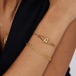 A refined take on personalization, this bracelet features a rounded bubble-style initial on a sleek box chain. The adjustable sliding clasp allows for a secure, tailored fit, while the softly curved letter adds a modern, sculptural touch. Wear it as a daily reminder of someone special—or as a quiet signature of your own name. Designed for comfort, meaning, and everyday versatility.