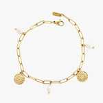 A radiant mix of mini gold sun charms and genuine pearls, this paperclip bracelet captures the essence of sunny days and laid-back luxury. Perfect for everyday wear, it brings a touch of brightness to any look.