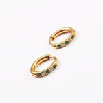 These petite hoops, adorned with green crystals that shimmer like emeralds, encapsulate the serenity of an oasis. Waterproof and dazzling, they're your go-to accessory for a day at the beach or a night on the town.