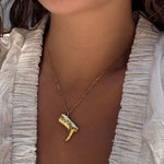 The Sienna necklace brings a bold twist to classic western charm, featuring a golden boot pendant with intricate detailing and a touch of sparkle — made for the free spirit with a wild heart.