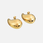 Aura is a pair of sleek and polished gold teardrop earrings, designed with a smooth, fluid shape that mirrors the natural elegance of water droplets. Perfect for adding a touch of minimalist sophistication to any look.