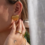 Embrace the delicate beauty of nature with these golden petal earrings. Iris reflects the serene elegance of blooming flowers, adding a graceful and feminine touch to your bohemian style.