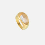 This elegant ring features a smooth, oval-shaped gemstone set in a polished gold band. Serena exudes timeless grace and sophistication, making it a versatile piece for any bohemian wardrobe.