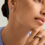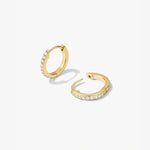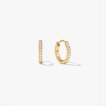 Introducing your upgraded ear stack - meet your new go-to huggies! These mini hoop earrings are adorned with pavé cubic zirconia and crafted from 18k Gold Vermeil on Sterling Silver. They're perfect for stacking with statement hoops or wearing alone for a minimalist look.