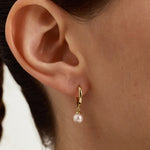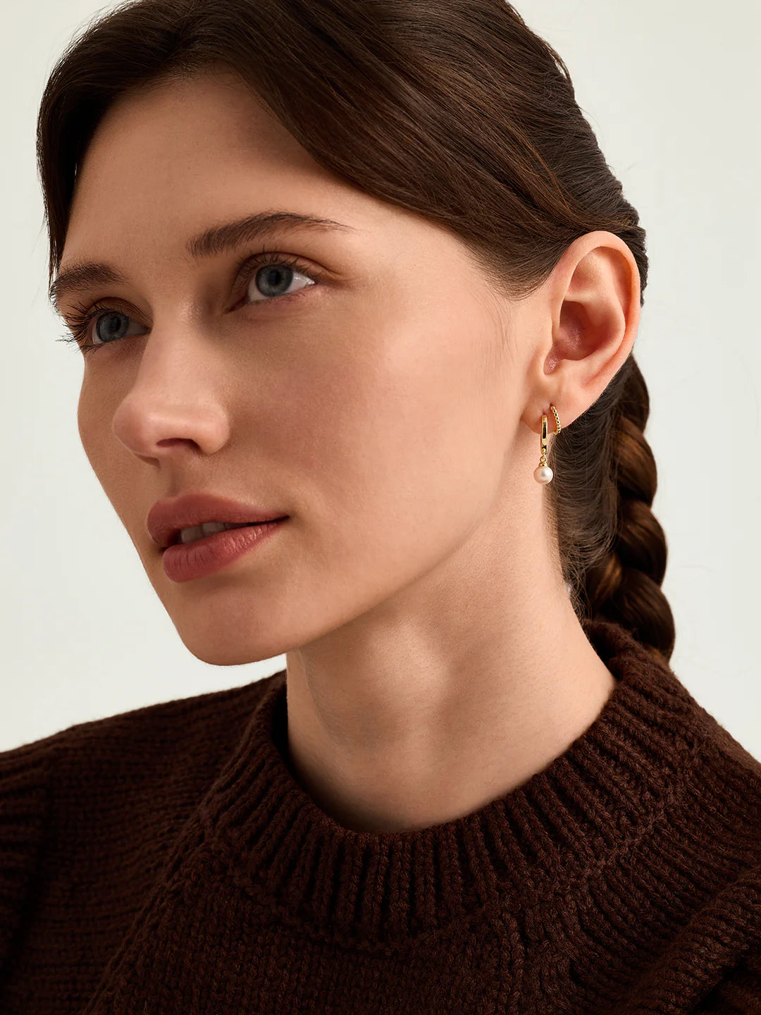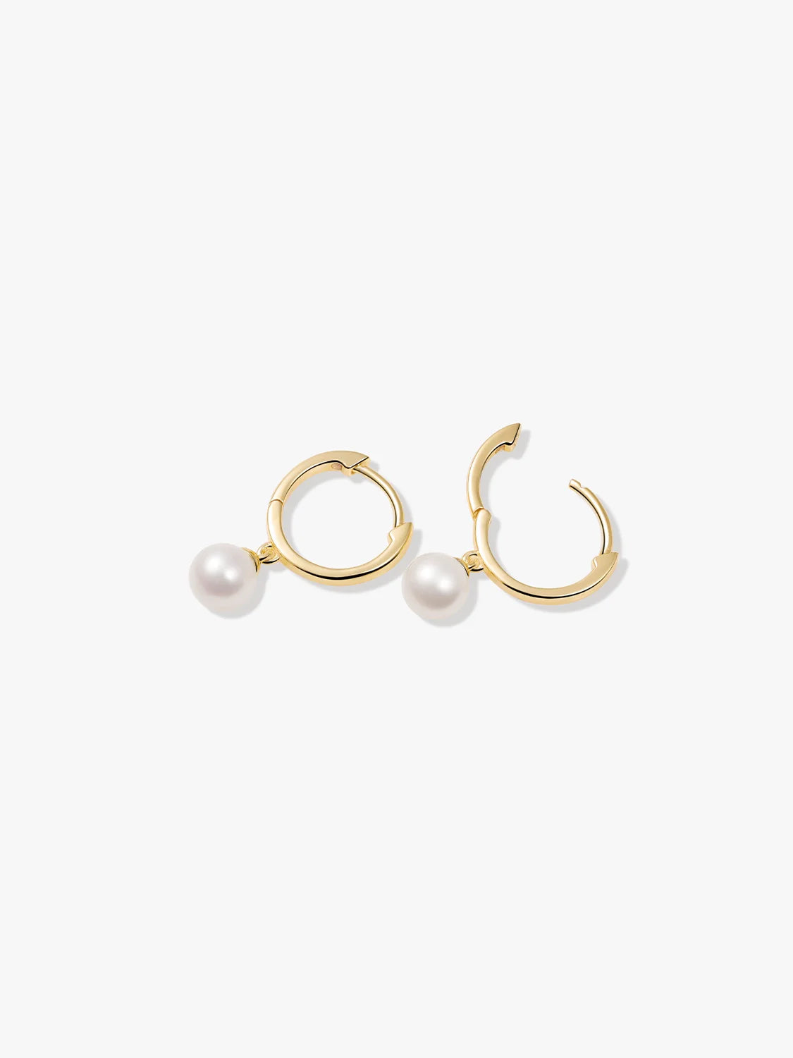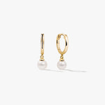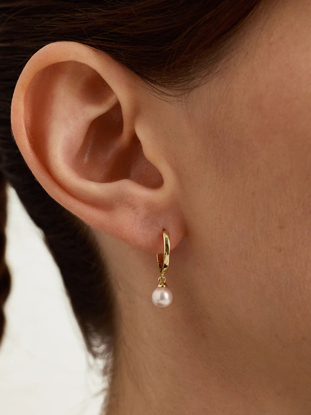 Dive into these modern, basic pearl huggie drops. Elegant simplicity for a refined touch to any look.