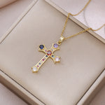 Handcrafted in 14k Gold, our Vintage Crucifix designed from the 1980s. Embedded  ruby & white zirconia gemstones, held on a figaro chain.