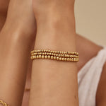 Three times the elegance, endlessly versatile. The 433 Gold Beaded Bracelet Stack features a trio of gold-plated beaded strands, each with its own subtle character yet designed to complement one another perfectly. Wear them together for a layered statement, or style them separately for a more delicate touch. Lightweight, radiant, and effortlessly chic — this is your new everyday essential.