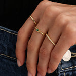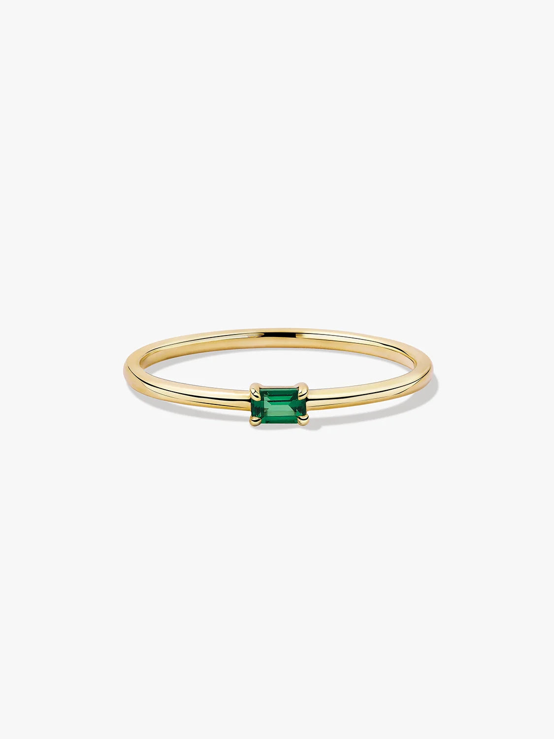 Embrace the allure of a baguette-shaped lab-grown emerald—this is your true love. Add this everyday stacker to your collection.