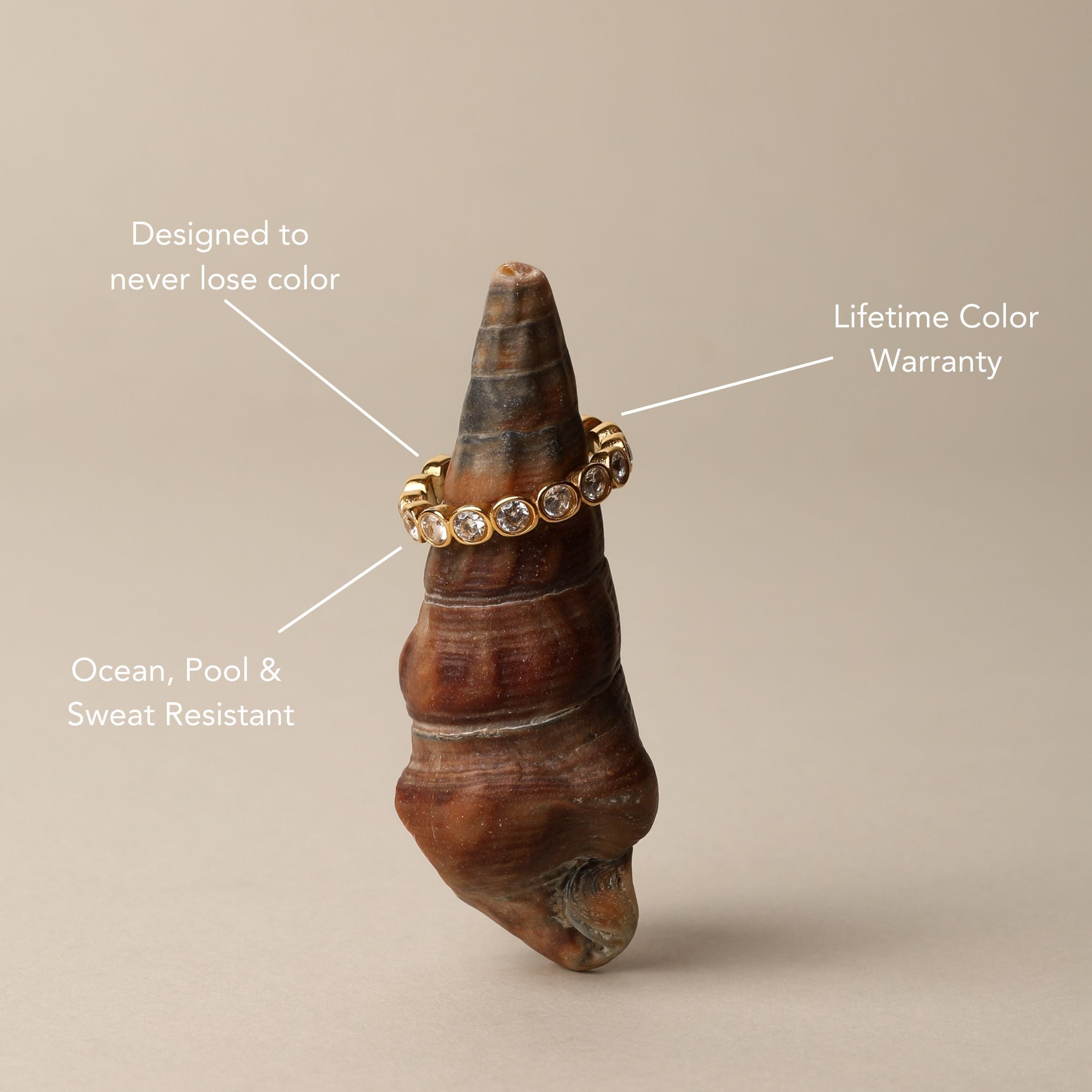 Out Beaded sparkly ring features high-quality zircon stones that shimmer like diamonds, set in a unique beaded gold-plated band.
