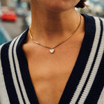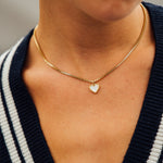 Handcrafted with a Mother of Pearl Heart Pendant, a 14k Gold classy necklace.