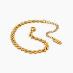 A continuous flow of gold heart links—clean, refined, and quietly romantic. Its fluid silhouette gives a touch of dreamy essence to every outfit. Versatile by nature, it wears beautifully on its own or layered into your everyday stack.