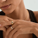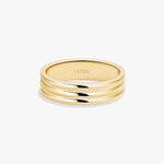 Indulge in the exquisite beauty of our classical round band ring, a symbol of feminine power and unity. Inspired by the helix shape, we have crafted a stunning design that fuses three intricate curves into a chunky, polished gold band. Perfect for layering with other golden pieces, this ring is a true statement piece that captures the essence of modern elegance. Wear it on its own for a minimalist look or mix and match with other ootdy jewelry to create a contemporary ensemble. Elevate your style with our sculptural classical round band ring, a true testament to the beauty and strength of women.