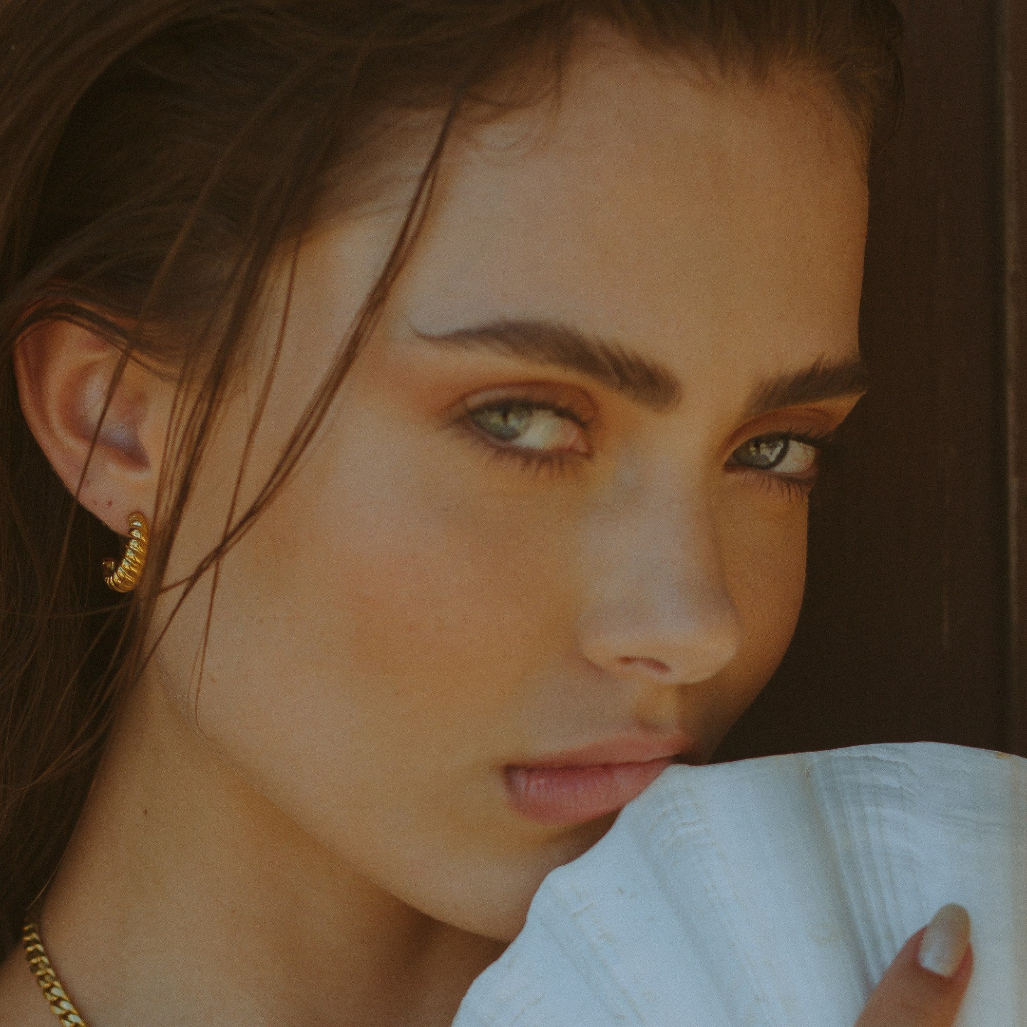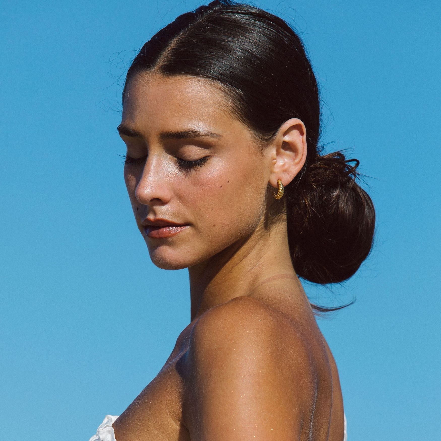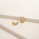 Channel your inner French girl with our Croissant Hoop Earrings! Waterproof and lightweight, they are the perfect, twisted hoop to step up your look.