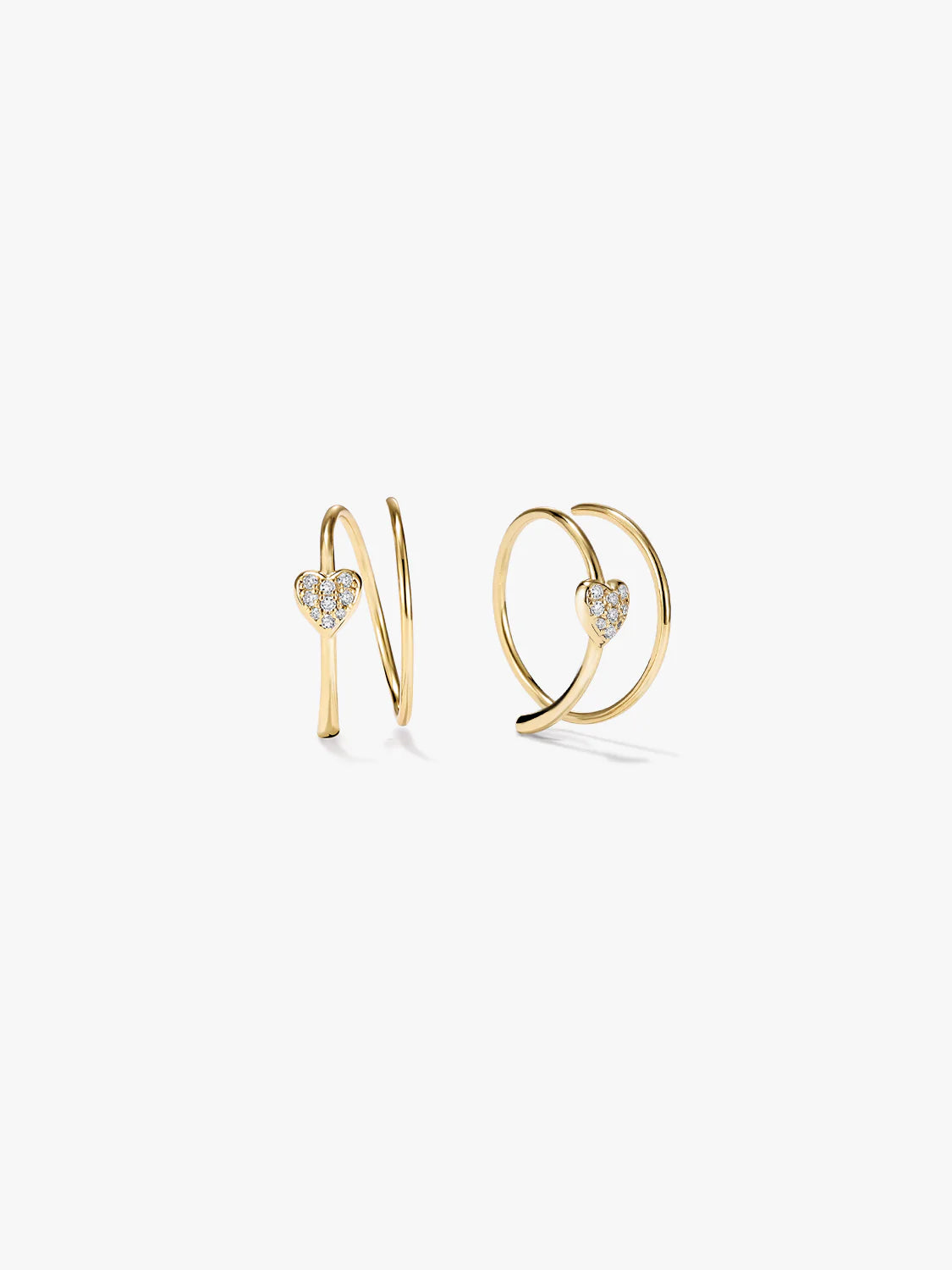 Introducing our Heart Crystal Double Hoops, designed to spiral around with a unique single-piercing feature. These hoops offer a perfect blend of stunning elegance and delicate charm, features the heart in a double hoop design. Chic and lovely, they are a must-have accessory.