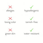 Sensitive skin approved. No nickel, no irritation, just comfort.