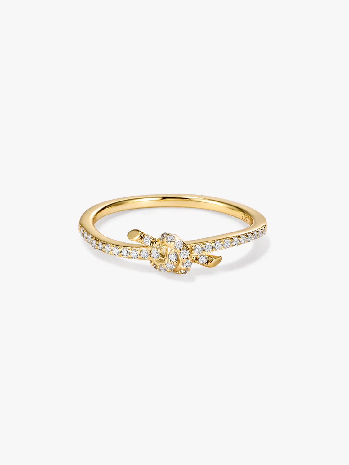 This lovely ring features an intricate knot design adorned with sparkling crystals. The knot symbolizes the power of connection. Perfect gift or timeless addition to any jewelry collection.