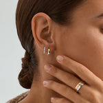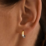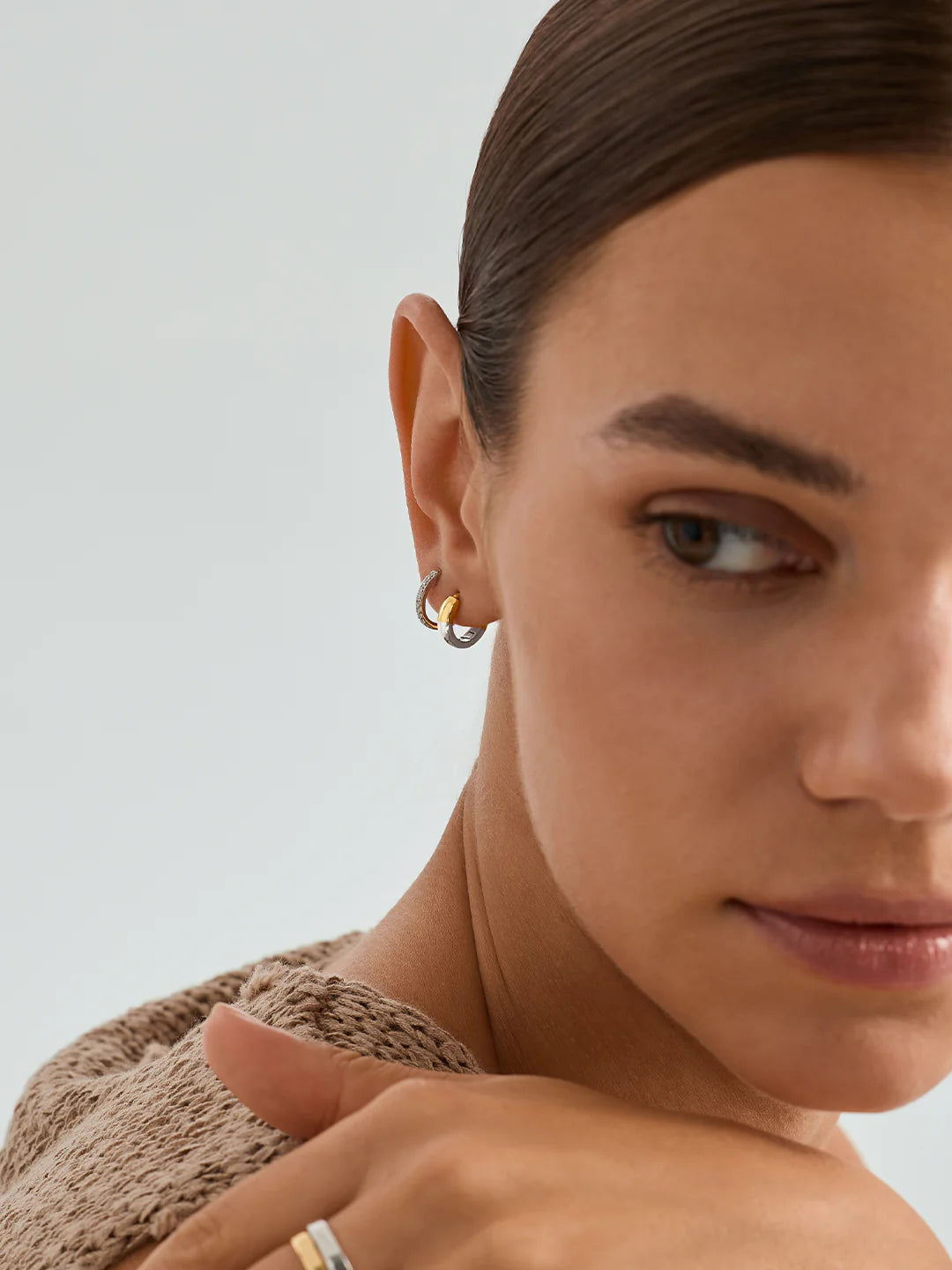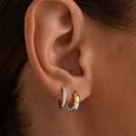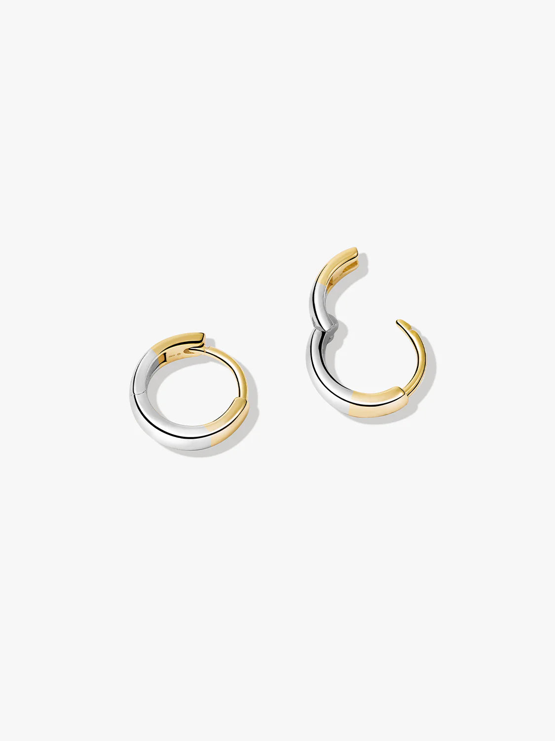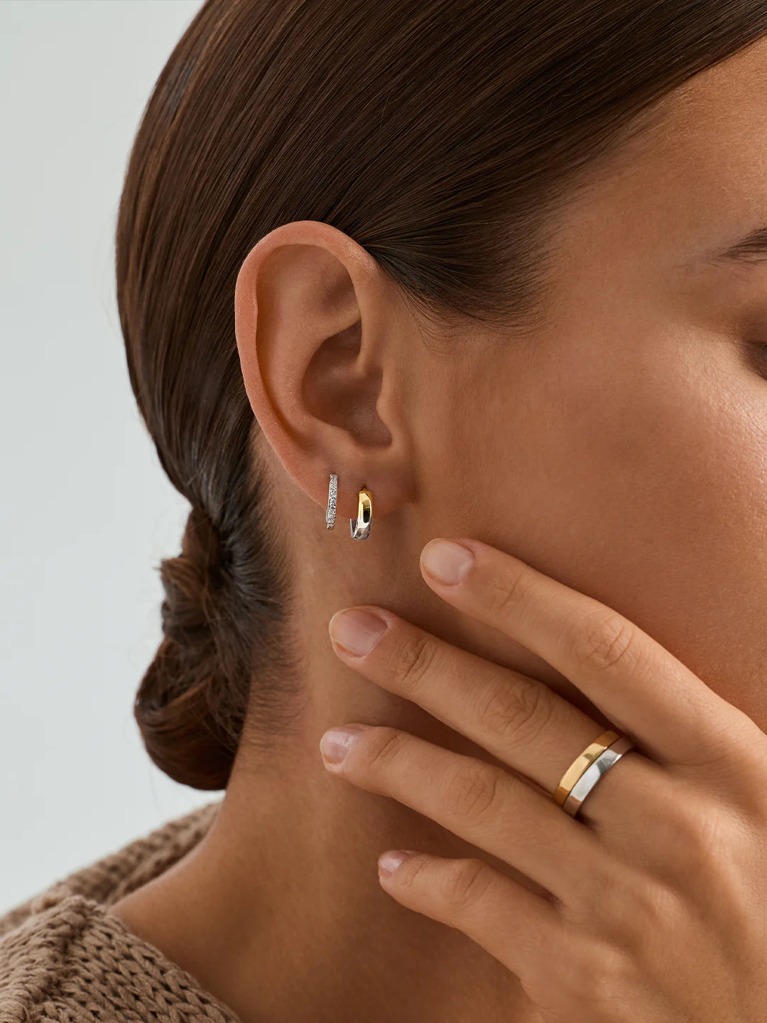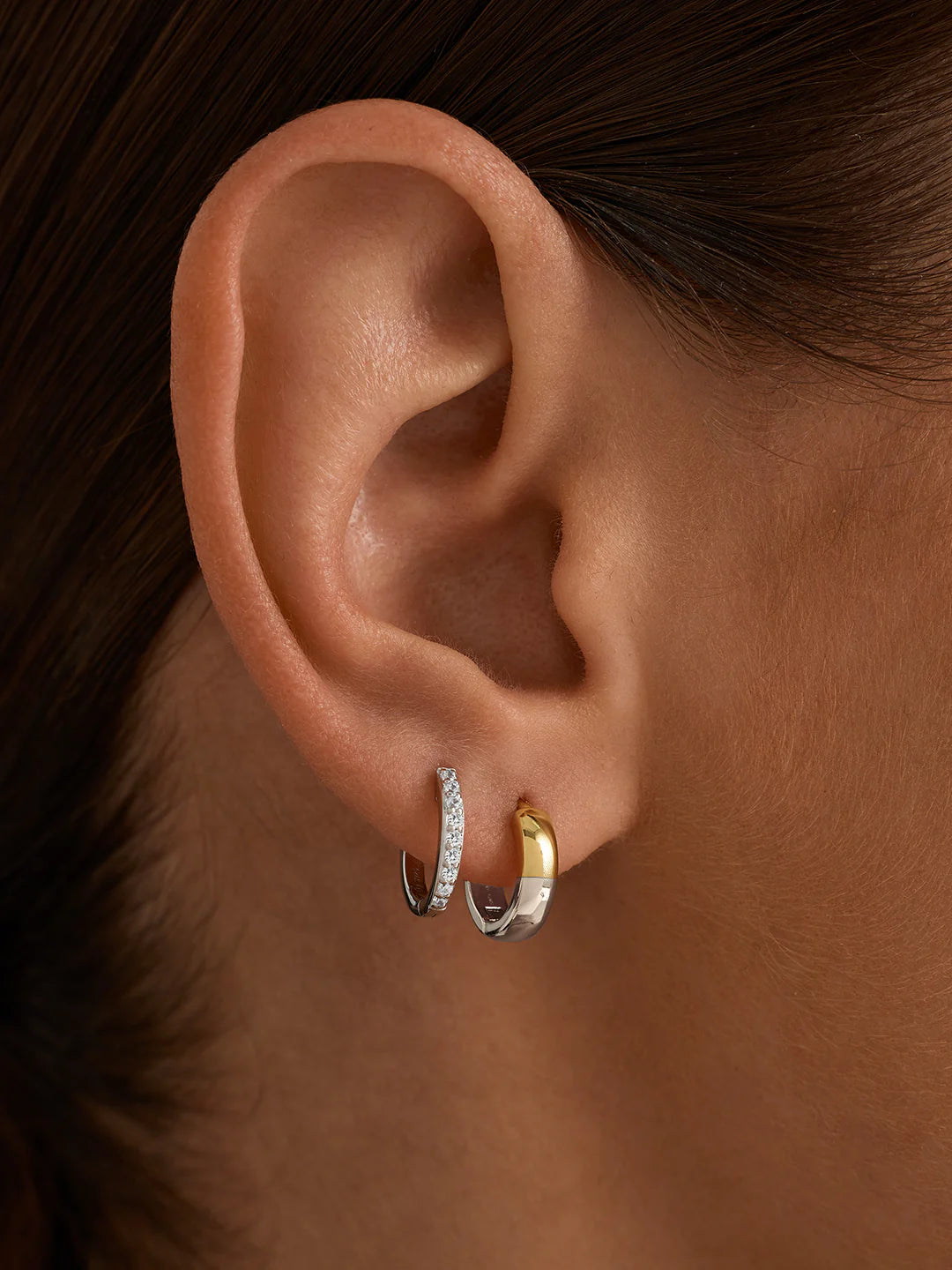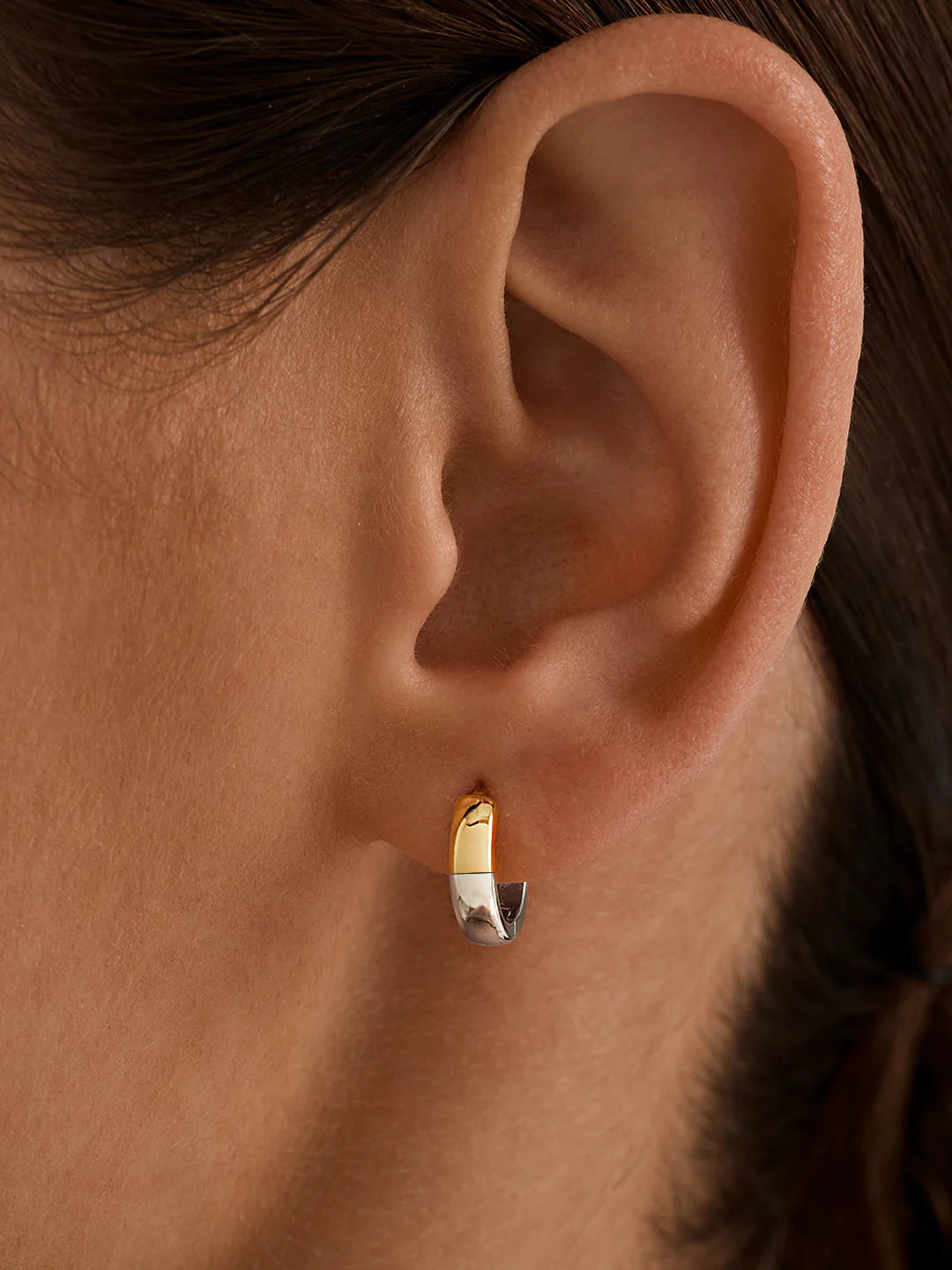 These timeless huggies feature a wider, flat profile that stands out with understated elegance. Their bold yet sleek design brings effortless charm, making them the perfect choice to elevate any outfit and brighten your day. A must-have for versatile, everyday styling, now in mixed metals for a chic, effortless finish.
