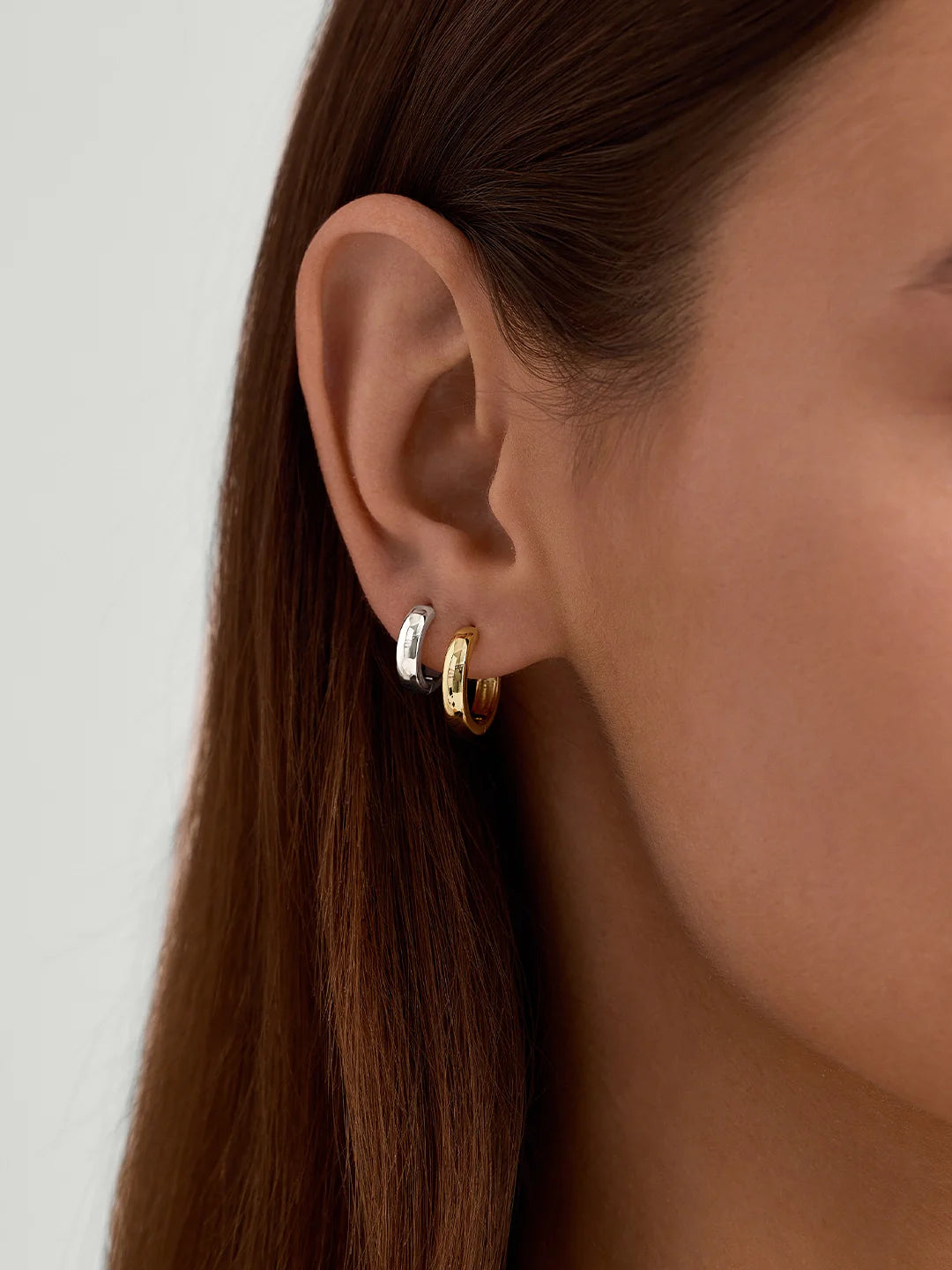 These timeless huggies feature a wider, flat profile that stands out with understated elegance. Their bold yet sleek design brings effortless charm, making them the perfect choice to elevate any outfit and brighten your day. A must-have for versatile, everyday styling.