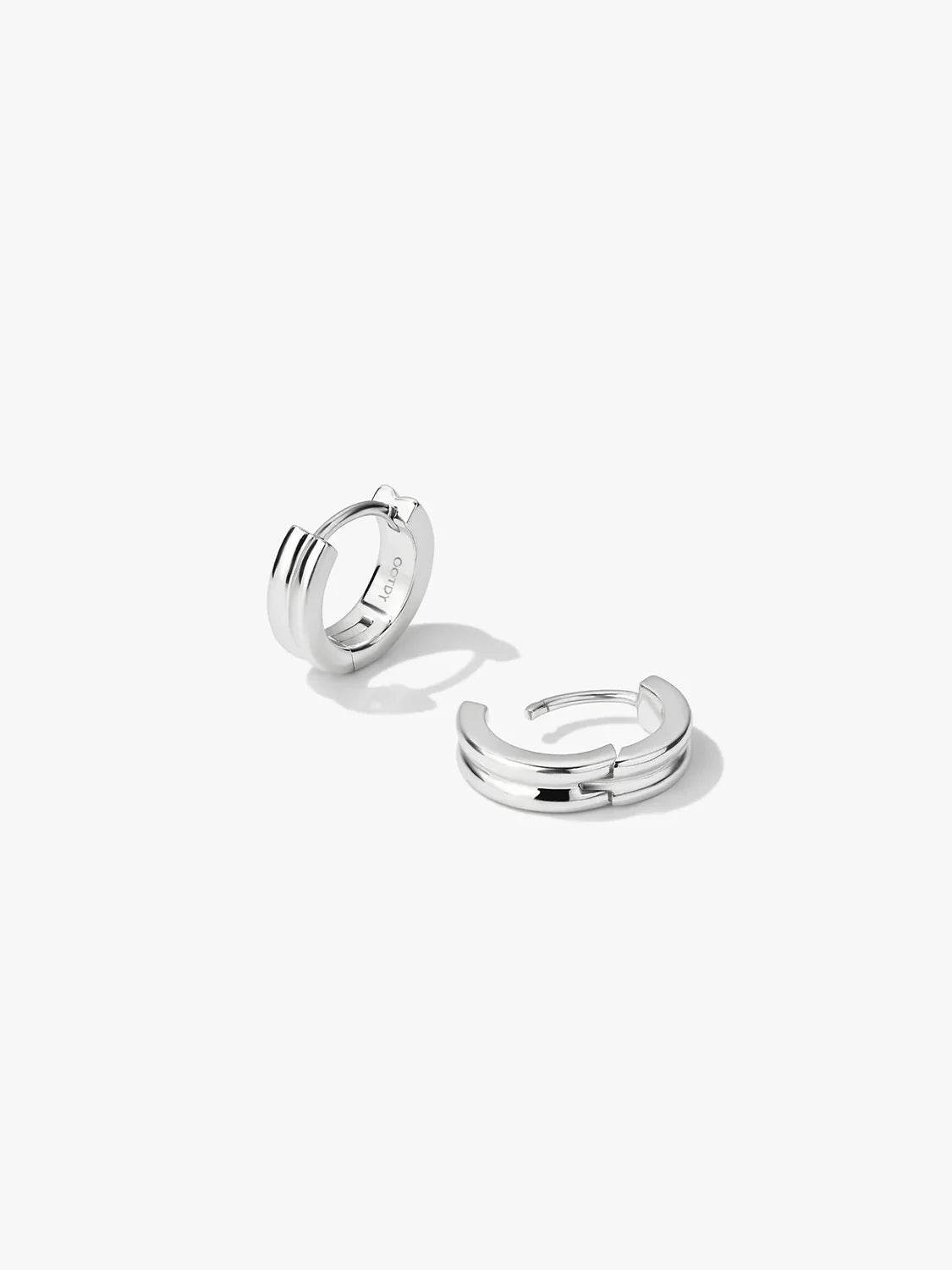 Introducing the beloved silver huggie hoop earrings that will become your go-to accessory. These earrings feature a stylish double-hoop design, adding a distinctive touch while maintaining a minimalist aesthetic. To create a simple everyday stack, consider combining them with our silver Mini Huggie Hoop earrings.