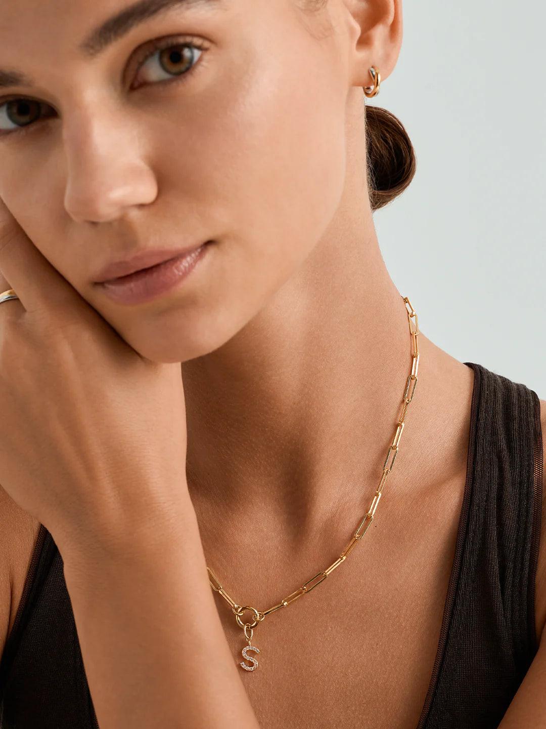 One chain, two styling options. This versatile paperclip chain is designed to hold your favorite charms, and it can also be flipped to the back for a sleek, classic chain look. Bold and chic, it's the perfect piece to elevate your style.