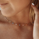 Step into a world of color with our Rainbow Dainty Choker. This piece is like wearing a slice of summer, with vibrant colors that remind you of sun-soaked days and clear blue skies. It's a small piece of summer's joy, ready to brighten your day.