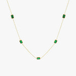 Crafted with a golden chain, each zircon green stone on the necklace is a vibrant emerald hue, reminiscent of Raja Ampat's clear, sparkling seas. This necklace dances gracefully between boldness and elegance, much like where the land kisses the sea.