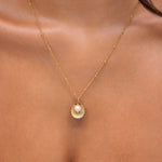 Our Seashell Necklace is a little treasure from the ocean—golden on one side, a hidden pearl on the other. Like a secret only the sea would share.