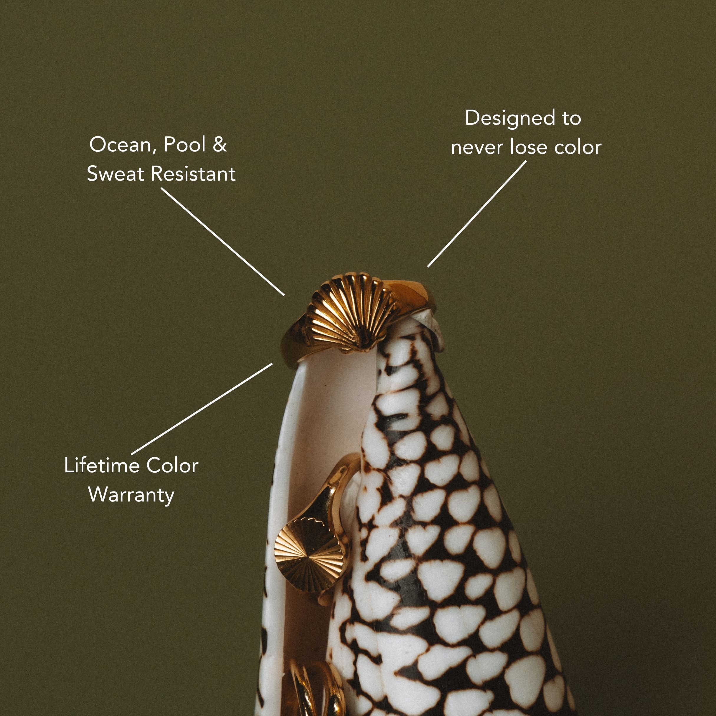 For the ones who feel most at home by the sea. The Seashell Ring is a little piece of the ocean—bold, golden, and made to move with you from sunrise swims to city streets.
