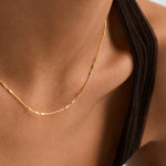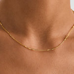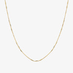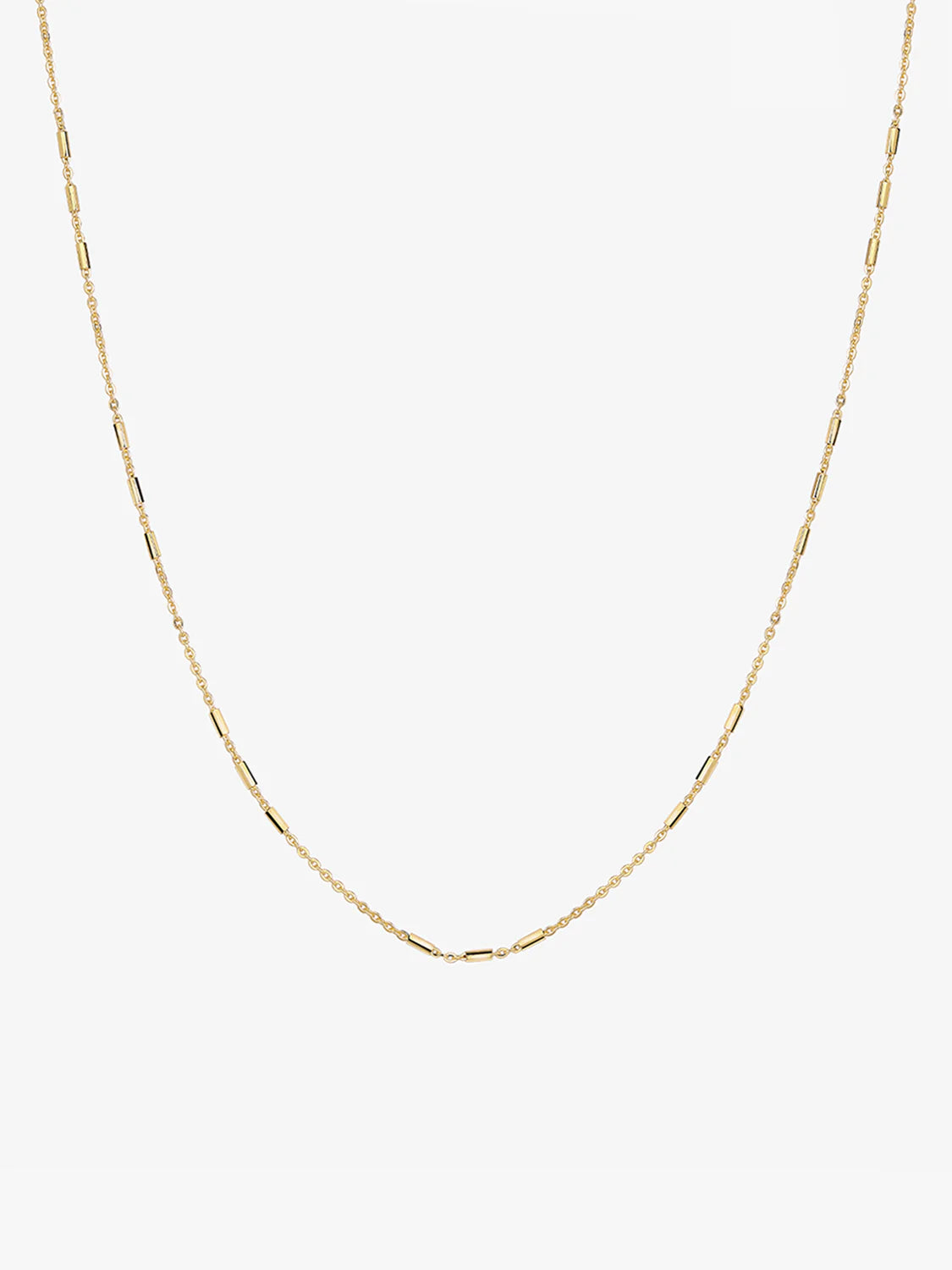 This necklace features a delicate cable chain adorned with tiny cylinder beads. Its minimal design exudes a chic effect. It creates a gorgeous look when layered with other pendant or pearl necklaces. A fun and stylish addition to your jewelry collection.