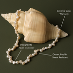 Make a statement with our Sunseeker Choker! Adorned with unique, irregular natural freshwater pearls, this choker is the perfect accessory for both beach days and city nights.